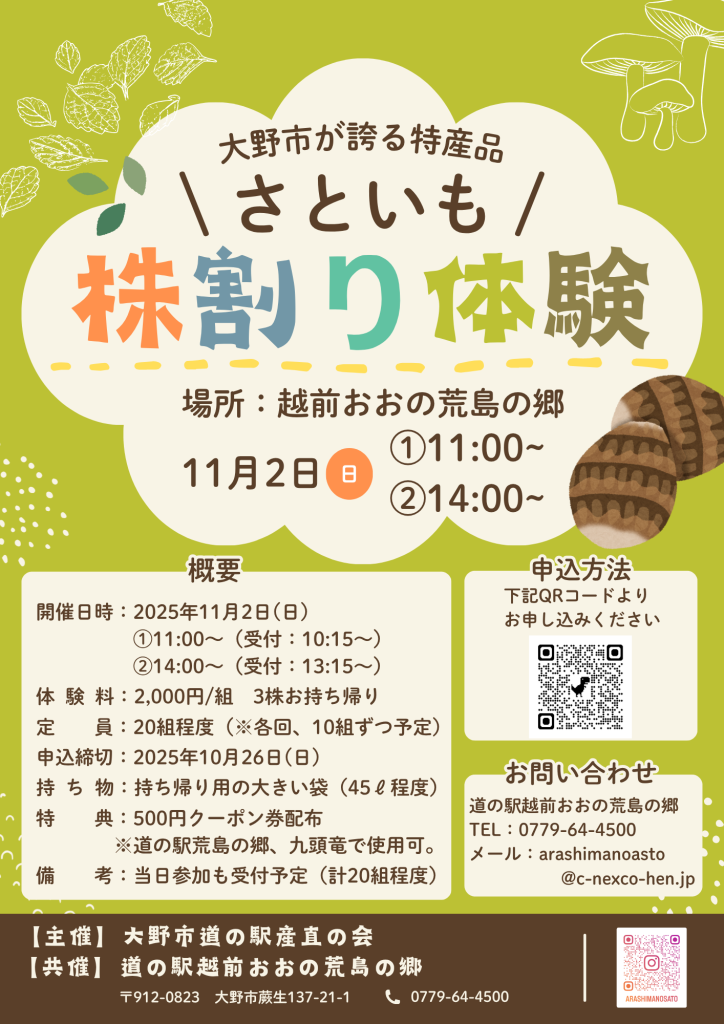 特典 :500円クーポン券配布(道の駅荒島の郷・道の駅九頭竜で使用可)