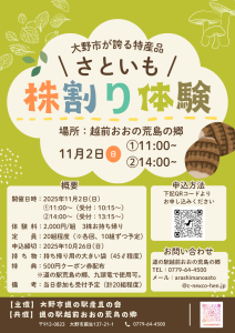 ご家族お友達と さといも株割り体験に ゴ~!!(募集中)